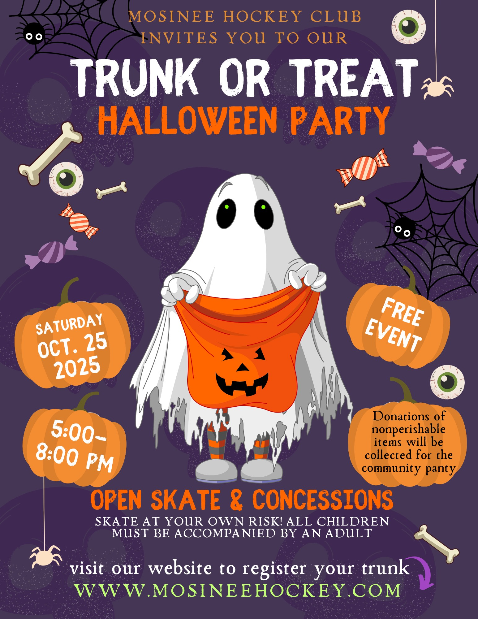 Join us for a free spooktacular open skate and trunk or treat event.